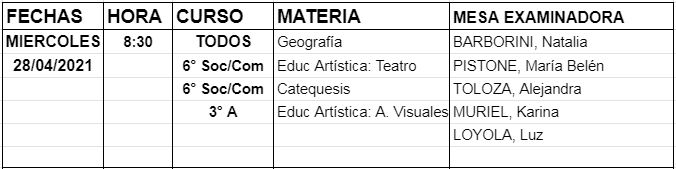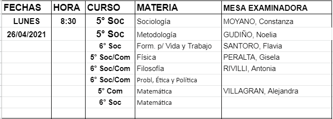 – anuncia la apertura de inscripciones a examenes abril de 2021. A